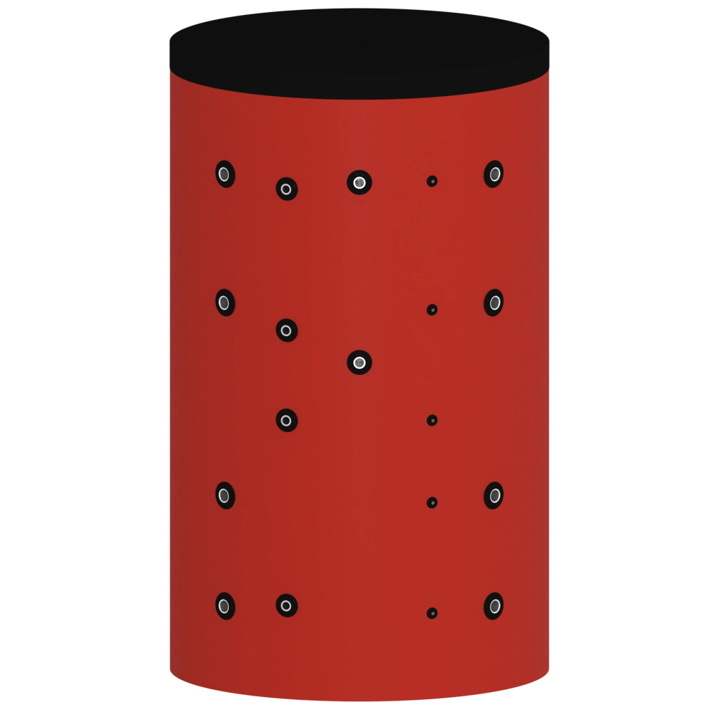 Naast de bufferaansluitingen A en N voor aanvoer en retour, blijven er 5 aansluitingen over voor andere doeleinden. De productafbeelding toont een 3D-weergave van de opslagtank. Stel het filter in op ALLES om de exacte lay-out van de aansluitingen te zien.