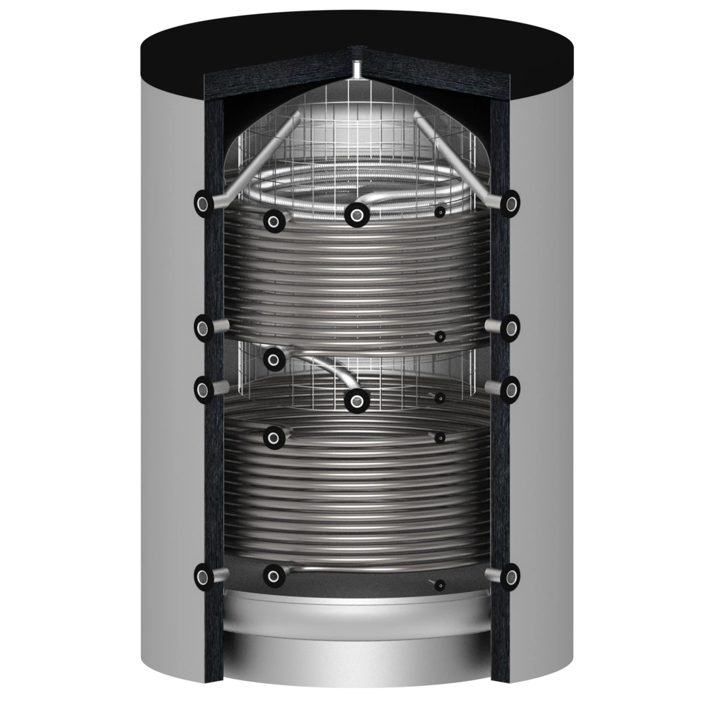 Zowel een buffervat als een verswaterboiler kunnen aanvullend worden uitgerust met 1 of 2 buiswarmtewisselaars voor een of meerdere warmtebronnen.