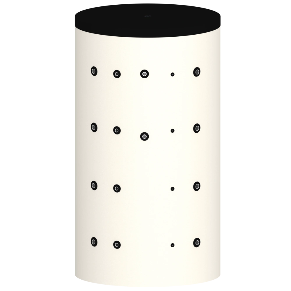 Naast de bufferaansluitingen A en N voor aanvoer en retour, blijven er 5 aansluitingen over voor andere doeleinden. De productafbeelding toont een 3D-weergave van de opslagtank. Stel het filter in op ALLES om de exacte lay-out van de aansluitingen te zien.