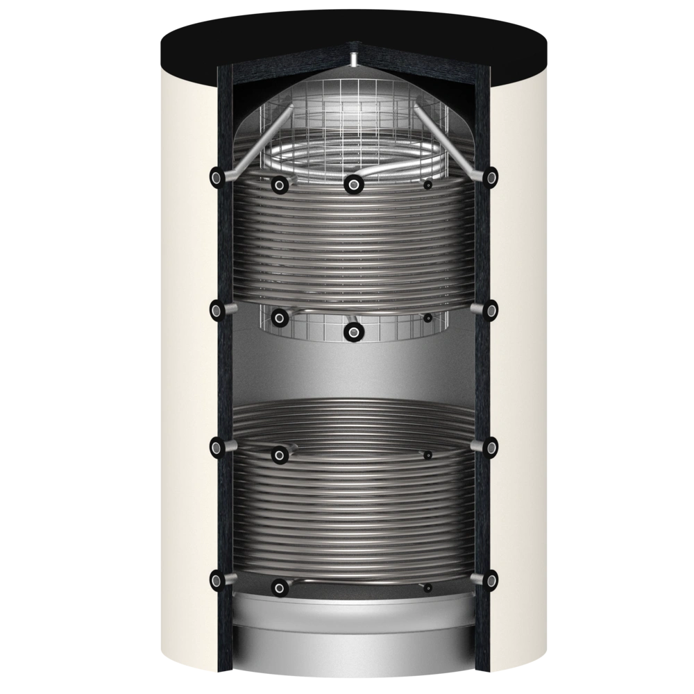 Zowel een buffervat als een verswaterboiler kunnen aanvullend worden uitgerust met 1 of 2 buiswarmtewisselaars voor een of meerdere warmtebronnen.