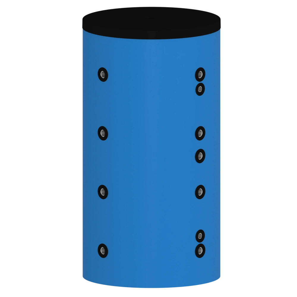 Naast de bufferaansluitingen A en N voor aanvoer en retour, blijven er 5 aansluitingen over voor andere doeleinden. De productafbeelding toont een 3D-weergave van de opslagtank. Stel het filter in op ALLES om de exacte lay-out van de aansluitingen te zien.