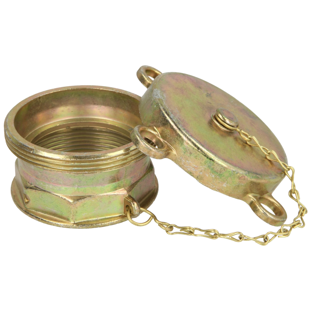 Verschließbarer Füllrohrverschluss mit Kette und Flachdichtung. Durch den Lochkranz ist die Kappe an jeder Position mit einem Vorhängeschloss verschließbar. Vorteilhaft bei überschwemmungsgefährdeten Gebieten...