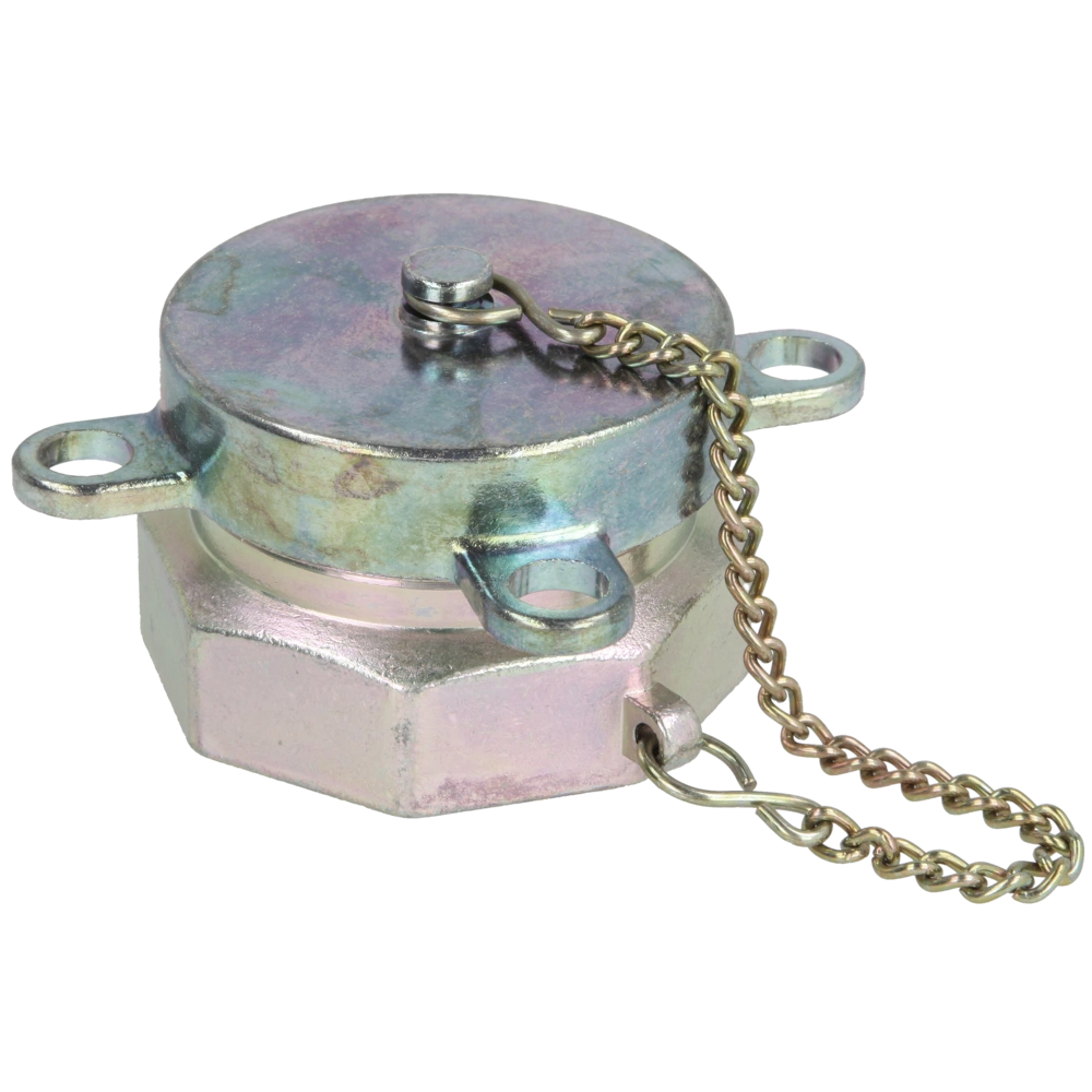Verschließbarer Füllrohrverschluss mit Kette und Flachdichtung. Durch den Lochkranz ist die Kappe an jeder Position mit einem Vorhängeschloss verschließbar. Vorteilhaft bei überschwemmungsgefährdeten Gebieten...