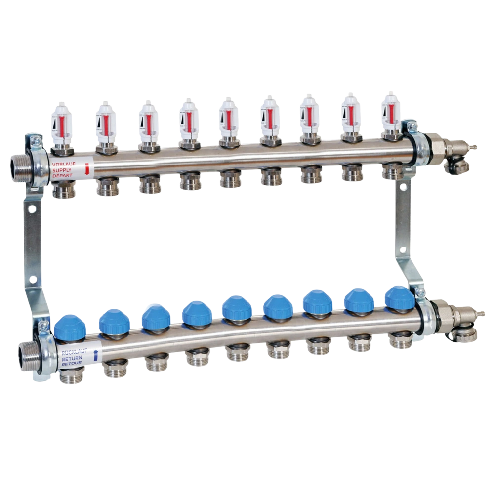 Fußbodenheizkreisverteiler mit automatischer Durchflussregelung für 9 Kreise