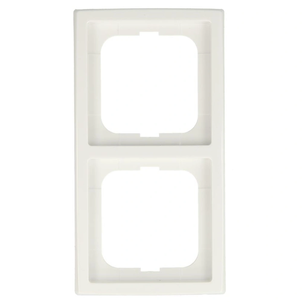 2-fach Abdeckrahmen zur senkrechten und waagerechten Montage. Der Rahmen kann für Kanalinstallationen mit 80 mm Kanalabdeckung verwendet werden.