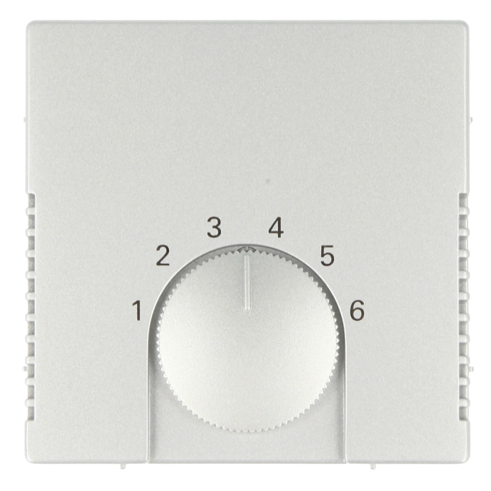 Zentralscheibe mit Drehknopf und Aufdruck "1" bis "6" als Bedienelement für Raumtemperaturregler-Einsätze zur Unterputz-Installation.