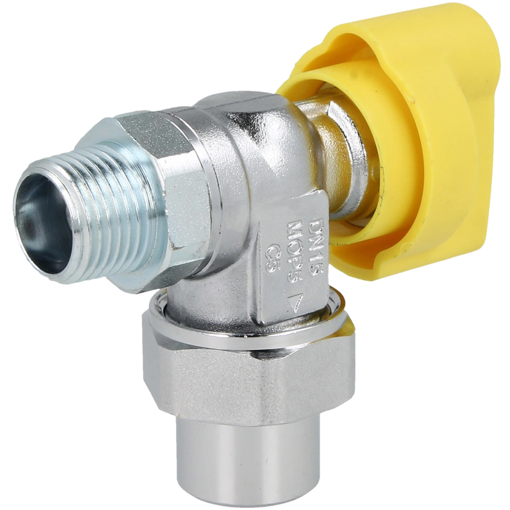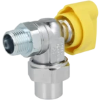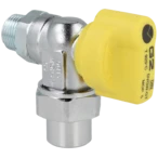 Gasanschlusskugelhahn mit Temperaturschutz für Gasgeräte. Zugelassen für alle Gase nach DVGW Arbeitsblatt G 260/1. Ein versehentliches Entriegeln des Ventils ist nicht möglich, da es nur durch Drücken des Griffes geöffnet werden kann. Der Temperaturschutz wird bei einer Temperatur von 100 °C aktiviert und verriegelt den Durchgang.