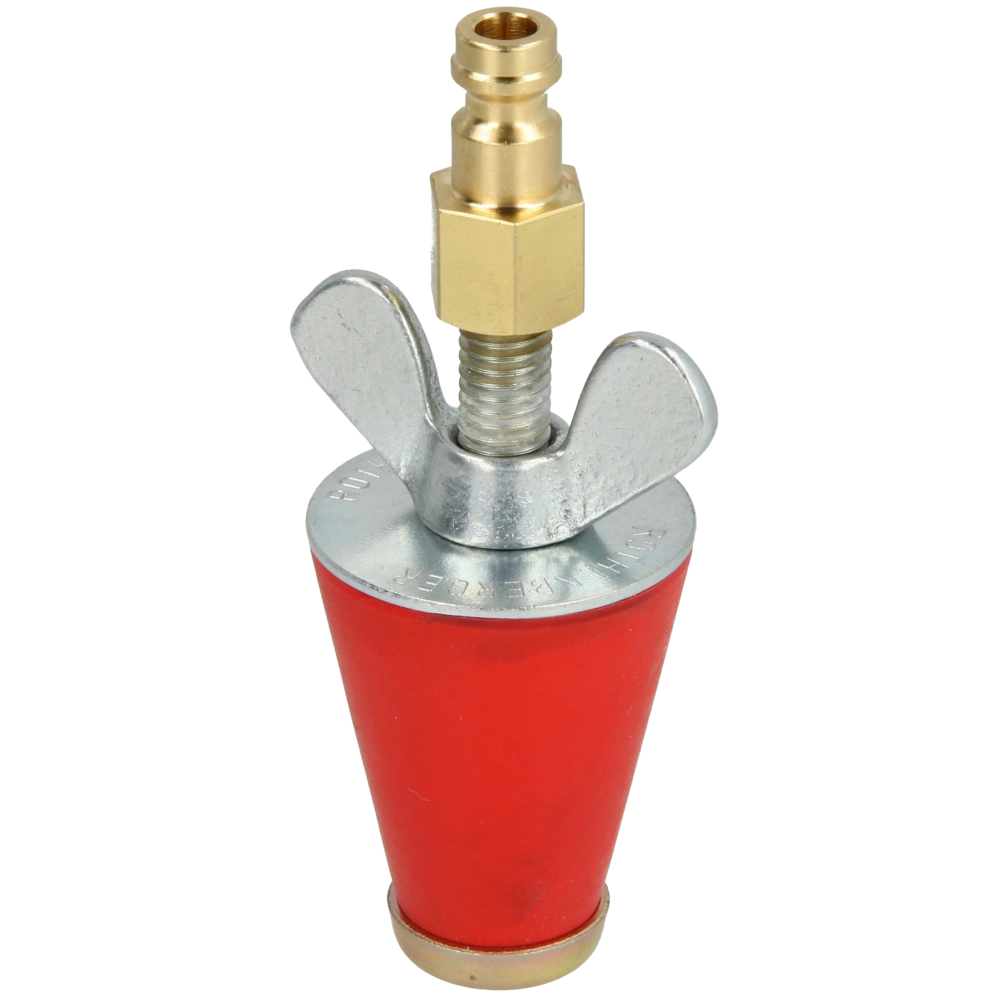 Konischer Gasprüfstopfen mit Pneumatik-Anschluss für ROTEST Gasleitungsprüfgerät.