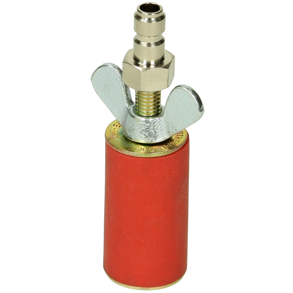 Zylindrischer Gasprüfstopfen mit Pneumatik-Anschluss für ROTEST Gasleitungsprüfgerät.