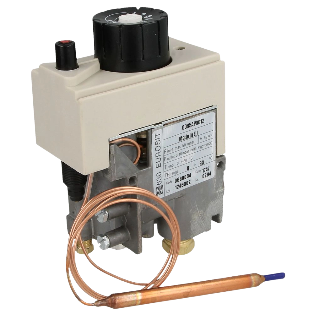 Gasventil für Außenwandöfen mit Zündbrenner. Durch den Gerätecode ist die genaue Spezifikation definiert.