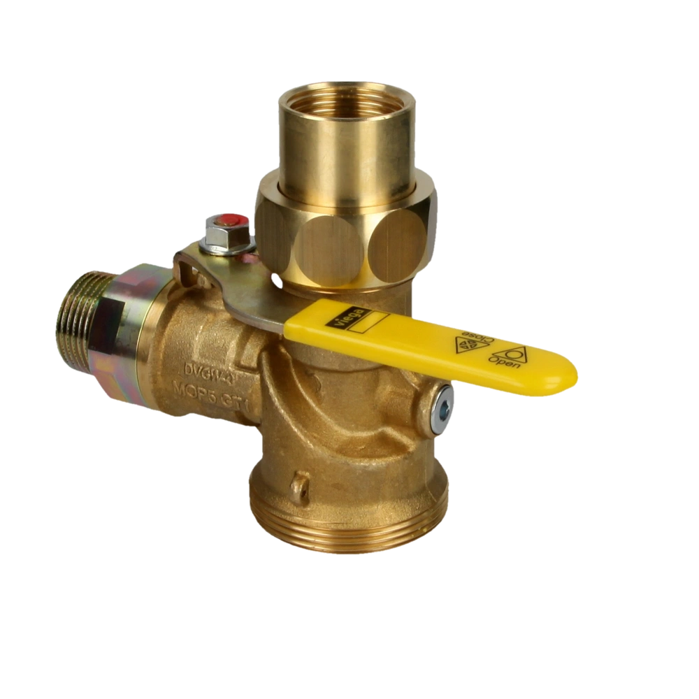 Auf der Ausgangseite kann man die Gaszählerüberwurfmutter plombieren. Durch die Prüfschraube kann der anliegende Gasdruck überprüft werden. Er ist für 30 Minuten bis 650 °C thermisch höher belastbar.