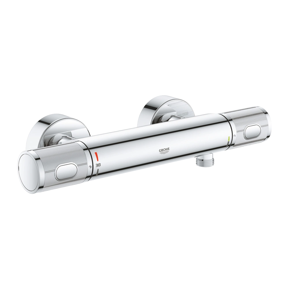 Alle Produktinformationen LieferumfangThermostat-Brausearmatur für eine konstante Wassertemperatur beim Duschen. Eine Temperatursperre bei 38 °C und ein optional einsetzbarer Temperaturendanschlag bei 43 °C sorgen für zusätzliche Sicherheit. Die Armatur besitzt einen Rückflussverhinderer und eine Wassersparfunktion, die den Durchfluss automatisch begrenzt. Außerdem verfügt die Armatur über Schmutzfangsiebe, S-Anschlüsse und Metallrosetten. Die Oberfläche ist unempfindlich gegen Verkratzen und kann leicht von Kalkablagerungen befreit werden. Dabei lässt sich die Armatur durch die komfortablen Griffe mit Rändelstruktur besonders gut bedienen.