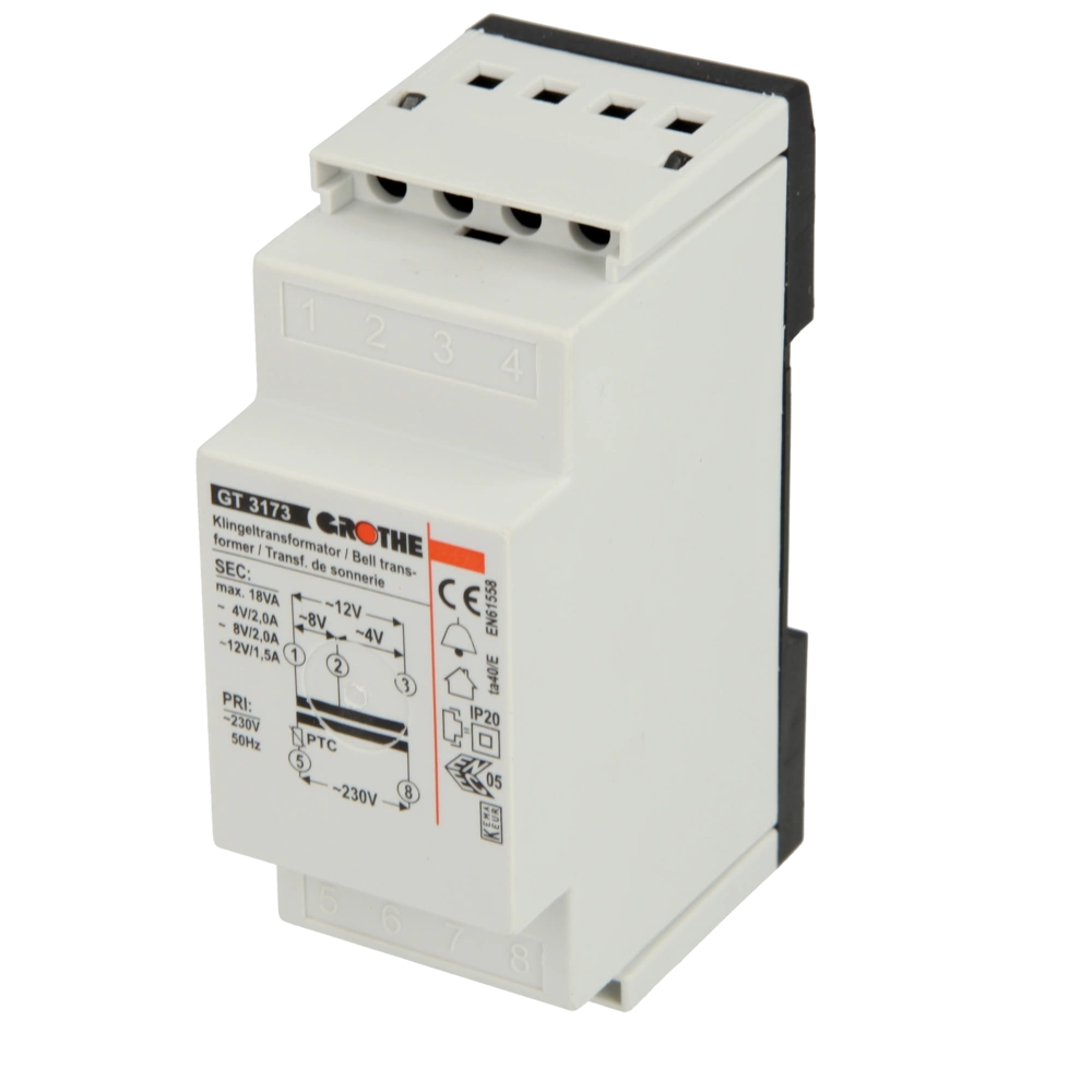 Der Klingeltransformator dient zum Einbau in Elektro- und Flach-Verteiler. Er ist optimiert für den Kurzzeiteinsatz bei z.B. Klingeln, Gongs, Läutewerken und Türöffnern im Wohnbereich. Der Transformator ist durch einen PTC, der bei Kurzschluss und Überlastung den Trafo primärseitig abschaltet, geschützt.