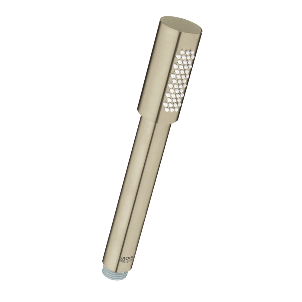 Die Handbrause ist wie ein Stick gestaltet. Sie ist mit der GROHE EcoJoy Technologie ausgestattet, die den Durchfluss konstant hält. Außerdem verfügt die Brause über die pflegeleichte GROHE StarLight Oberfläche, ist PVD-beschichtet und somit unempfindlich gegen Verkratzen. Das Antikalk-System SpeedClean sorgt für leichtes Entfernen von Ablagerungen durch einfaches Wegwischen.