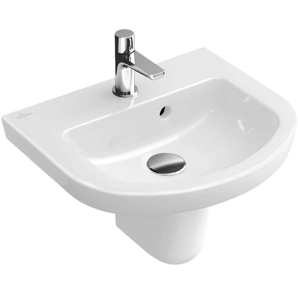 Hochwertiges Handwaschbecken in modernem Design für die wandhängende Montage. Der Waschtisch ist mit Überlauf und durchgestochenem Hahnloch ausgestattet und für Einloch-Armaturen geeignet. Die schmutzabweisende Oberfläche mit CeramicPlus-Beschichtung lässt sich besonders einfach reinigen.