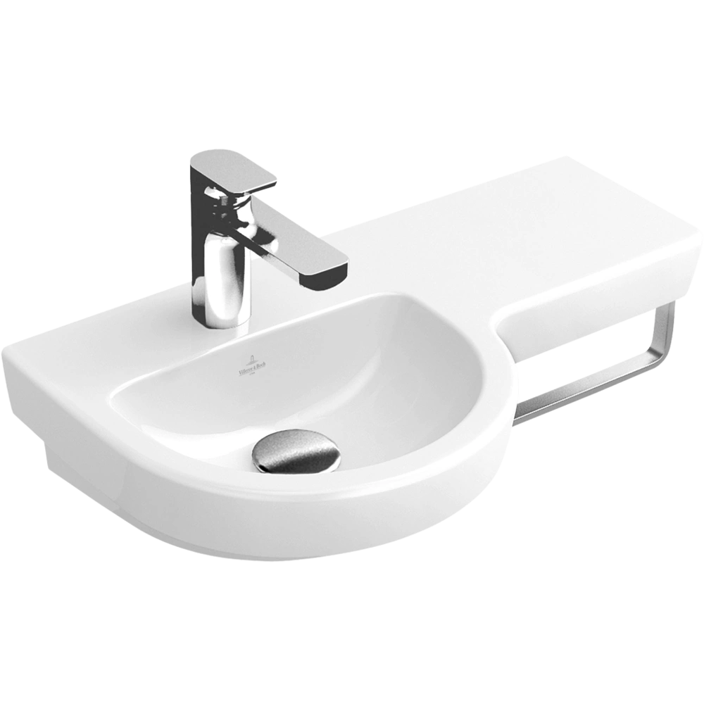 Alle Produktinformationen LieferumfangHochwertiges Handwaschbecken mit seitlicher Ablage rechts für die wandhängende Montage. Der Waschtisch mit durchgestochenem Hahnloch ist für Einloch-Armaturen geeignet. Die schmutzabweisende Oberfläche mit CeramicPlus-Beschichtung lässt sich besonders einfach reinigen.