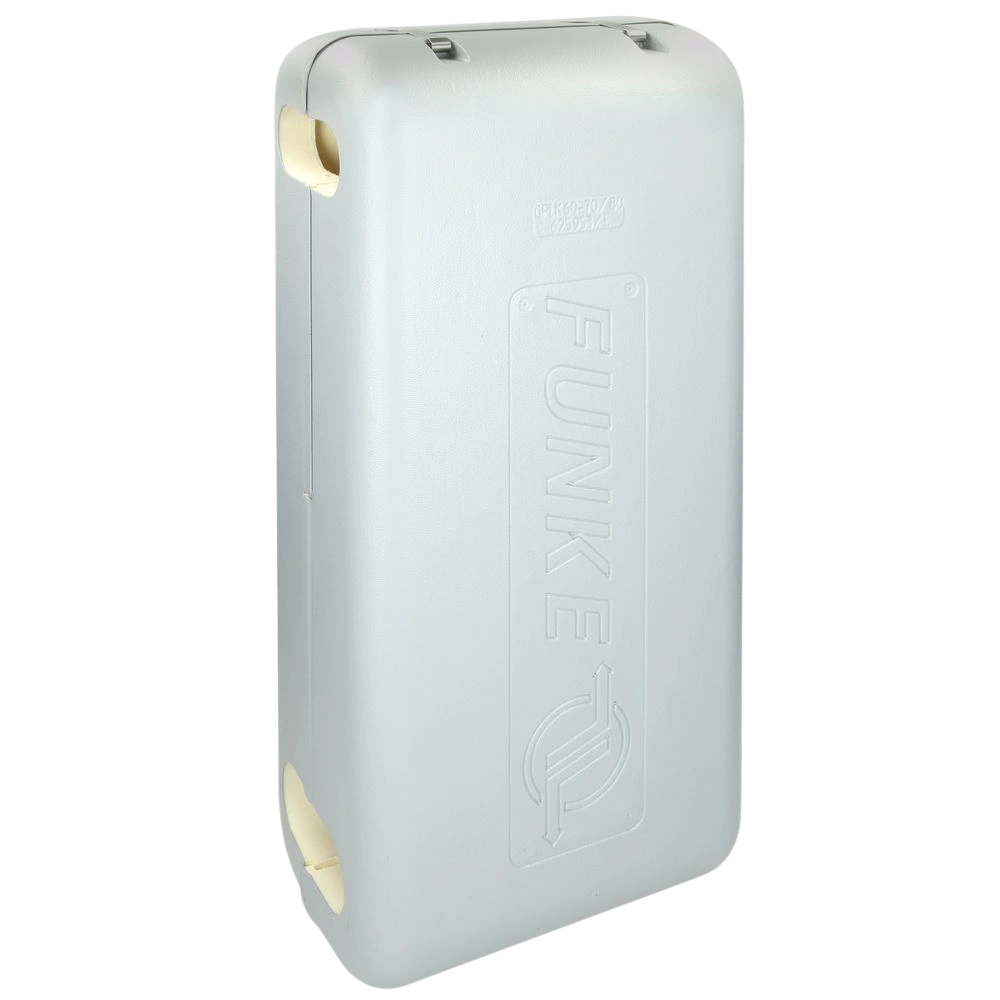 Isolierung für OEG Plattenwärmetauscher. Die Isolierung aus Hartschaum mit Kunststoffoberfläche ist in zwei Halbschalen geteilt, die auch am bereits eingebauten Wärmetauscher angebracht werden können.