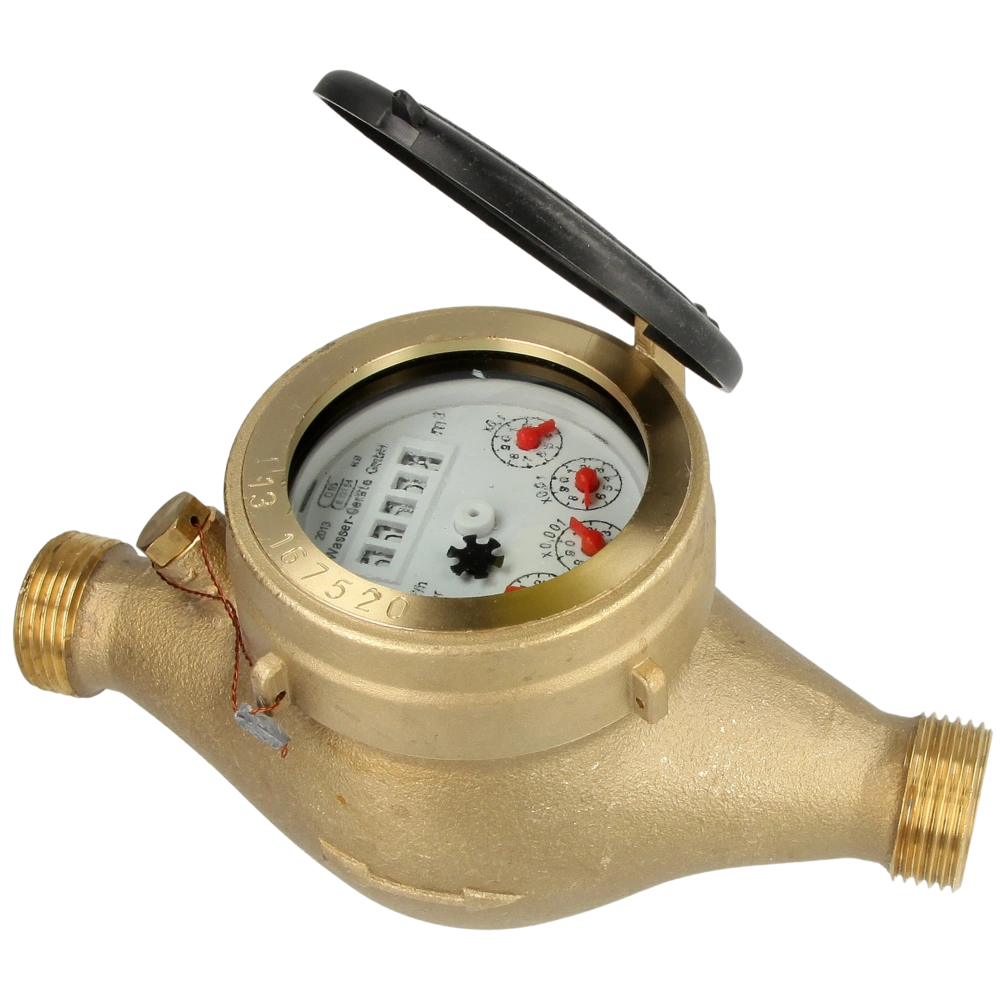 Geeichter Hauswasserzähler für Kaltwasser bis 30 °C. Es handelt sich dabei um einen Mehrstrahl-Flügelrad-Nassläufer mit Rollenzählwerk für die senkrechte oder waagerechte Montage.