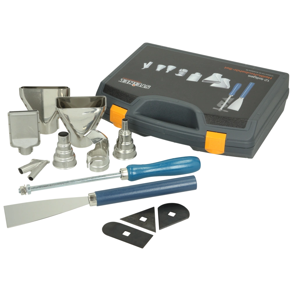 Alle Produktinformationen LieferumfangDas 12-teilige Heißluft-Zubehörset ist für alle Heißluftanwendungen geeignet, unter anderem für das Entfernen von Farbe, Schweißen von Planen, Verschweißen von Kunststoffen, Schrumpfen von Kabelbäumen, punktuelles Erwärmen und Verformen.
