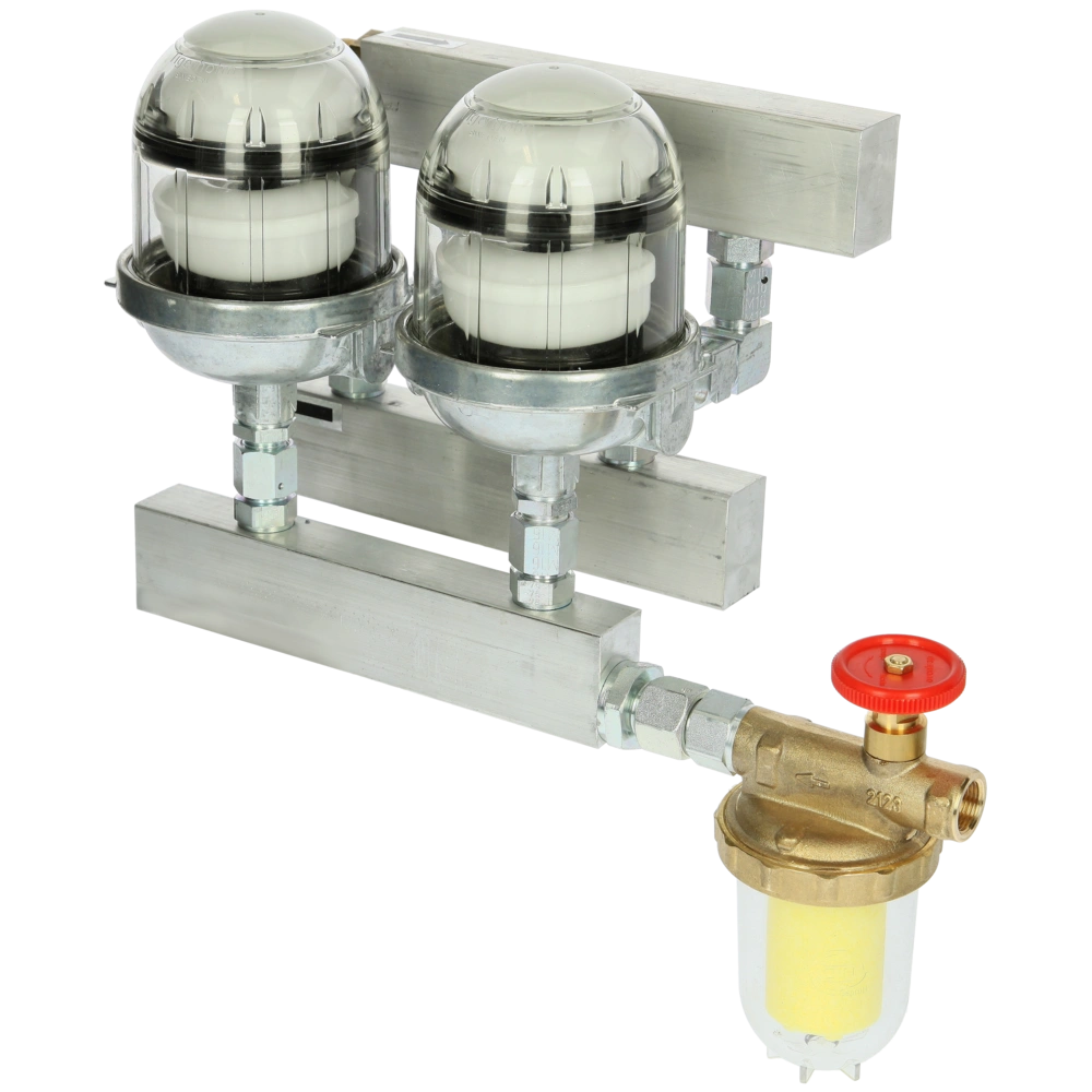 Alle ProduktinformationenDie automatische Heizölentlüfter haben sich bei der Umstellung von Zweistrang- auf Einstrangsystemen seit Jahren bewährt. Da die Literleistung der Entlüfter jedoch begrenzt ist, war der Einsatz in Verbindung mit leistungsstarken Ölbrennerpumpen problematisch. Mit dem Heizölgruppenlüfter erhalten Sie eine sach- und fachgerechte Kombination von 2- bzw. 3-Entlüftern. Die Einheit besteht aus parallel geschalteten und in Reihe angeordneten automatischen Heizöl-Entlüftern. Die Ölbrennerpumpe wird mit Saug- und Rücklaufseite, also wie bisher im Zweistrangbetrieb, angeschlossen.