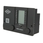 Heizungsregelung mit Drehknopfbetätigung und symbolgeführter Displayanzeige zum direkten Einbau in den DIN-Schacht aller gängigen Kesselmarken.