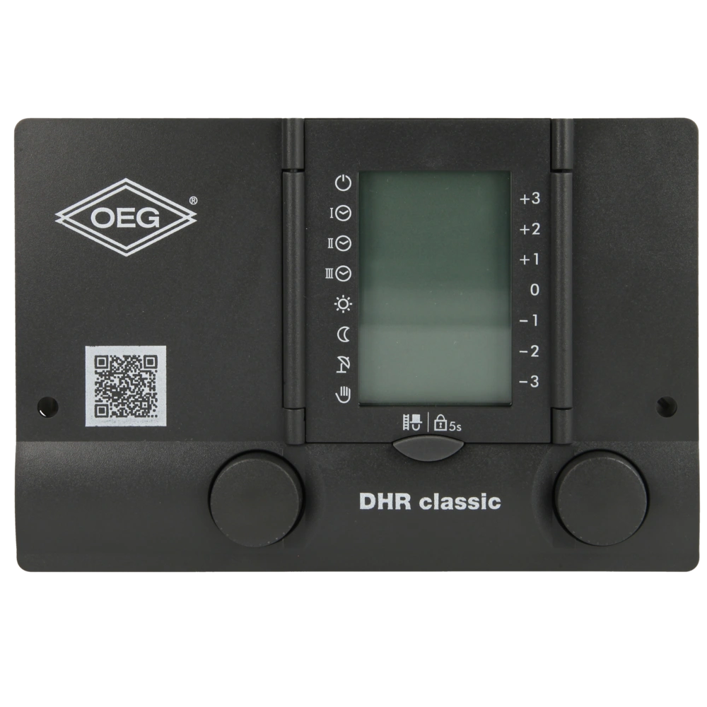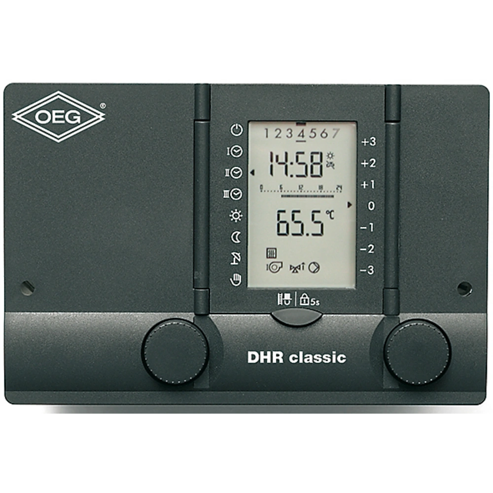 Der DHR besitzt eine digitale Kalenderuhr mit editierbaren Wochenzeitprogrammen, 3 Heiz- und 1 Warmwasserprogramm sowie zwei Zeitkanäle für Raumheizung und Warmwasser.