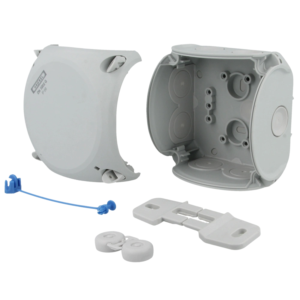 Dieser Kabelabzweigkasten aus hochwertigem Thermoplast ist für die Aufputz-Installation in Gebäuden oder geschützten Bereichen im Freien vorgesehen. Zusätzlich bietet es elastische Dichtmembranen, die für Leitungseinführung entfernbar ist. Für Bereiche in der Öffentlichkeit besteht die Möglichkeit, diesen Abzweigkasten zu verplomben.