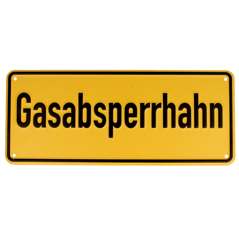 Hinweisschild aus Aluminium: "Gasabsperrhahn"