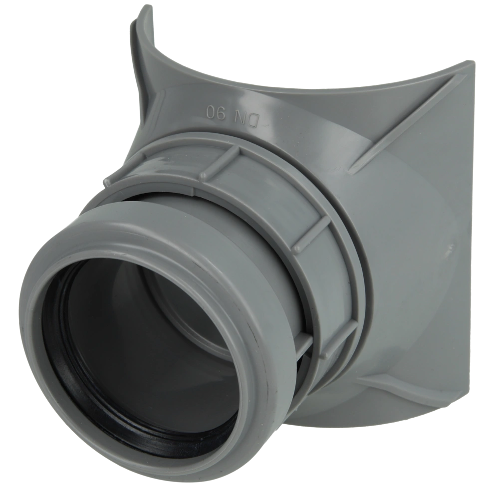 Heißwasserbeständiger HT-Schraub-Abzweig aus schwer entflammbarem Polypropylen zur einfachen Installation an einer vorhandenen Rohrleitung.