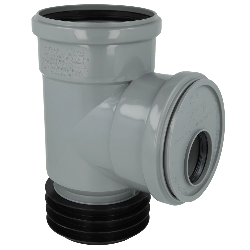 HT-Steck-Abzweig aus schwer entflammbarem Polypropylen für HT- und KG-Rohre. Der platzsparende Abzweig ist wasserdicht bis 5 Meter Wassersäule und wird senkrecht oder in einem Winkel größer 45° eingebaut.