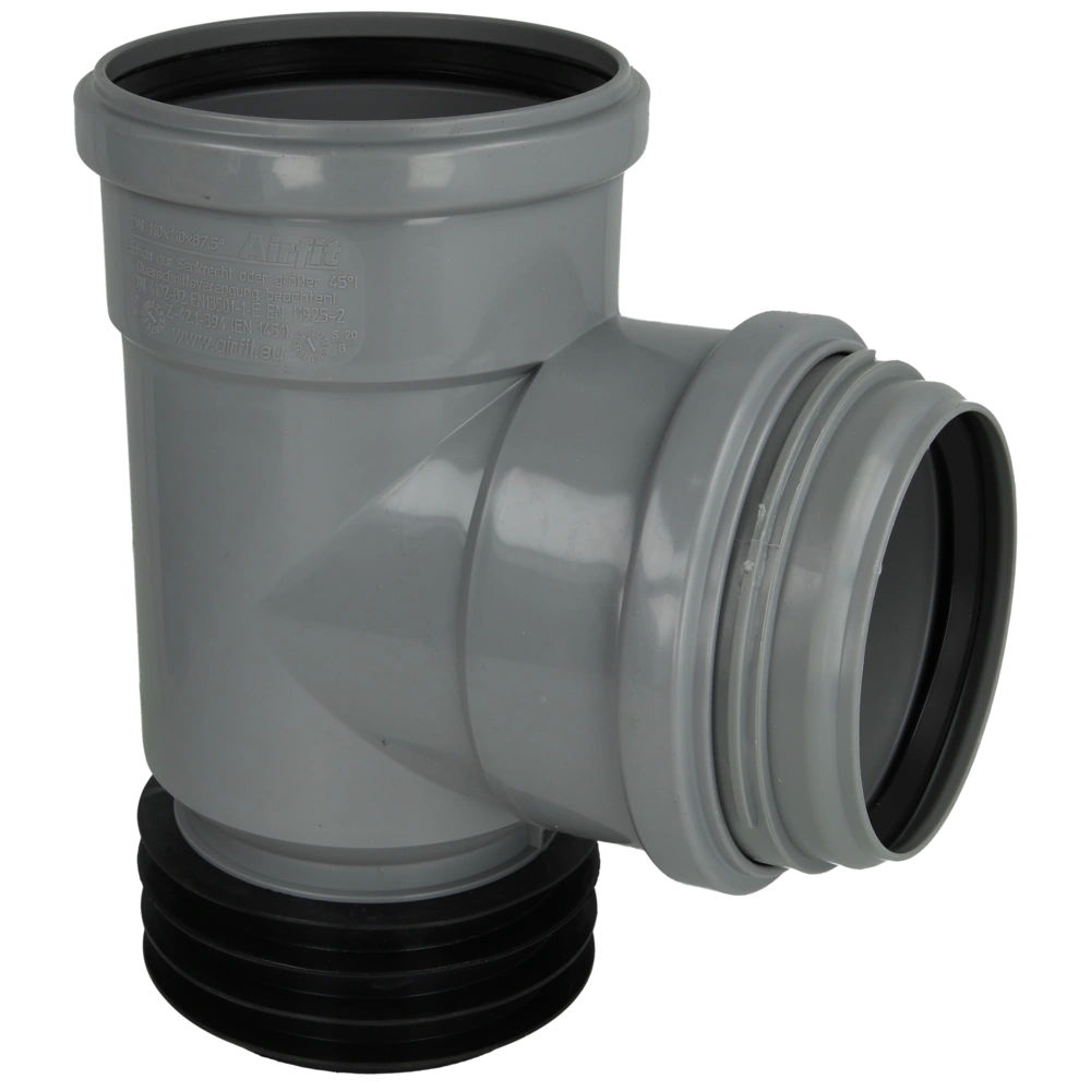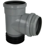 HT-Steck-Abzweig aus schwer entflammbarem Polypropylen für HT- und KG-Rohre. Der platzsparende Abzweig ist wasserdicht bis 5 Meter Wassersäule und wird senkrecht oder in einem Winkel größer 45° eingebaut.