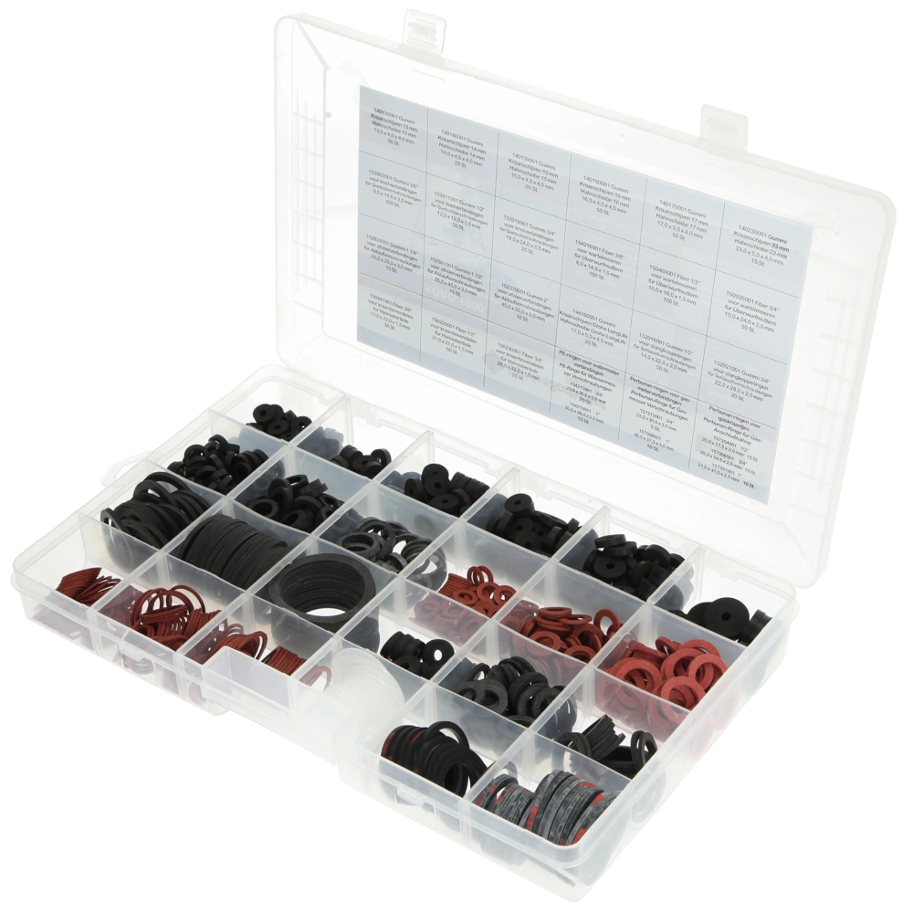 Alle Produktinformationen LieferumfangDas Installations-Dichtungs-Sortiment wird in einer transparenten und bruchfesten Kunststoff-Box geliefert. Ein Inhaltsverzeichnis über Artikel und Abmessungen liegt jeder Box bei.