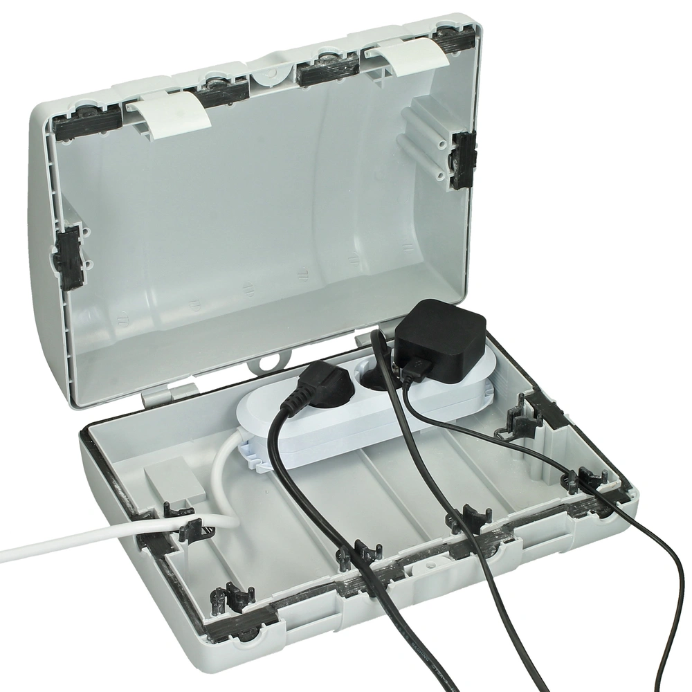 Die Kabelsafebox bietet hervorragenden Schutz für Steckdosenleisten, Ladegeräte, Verlängerungen und Adapter....