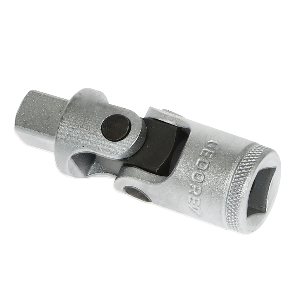 Kardangelenk für handbetätigte Steckschlüsseleinsätze mit Vierkantantrieb. Die Steckschlüssel und Einsätze werden mit einer Kugelarretierung festgehalten.