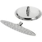 Kopfbrause aus poliertem Edelstahl in moderner, flacher Optik. Durch das Kugelgelenk lässt sich die Kopfbrause in unterschiedliche Richtungen schwenken und individuell anpassen. Antikalknoppen sorgen für eine einfache Reinigung.