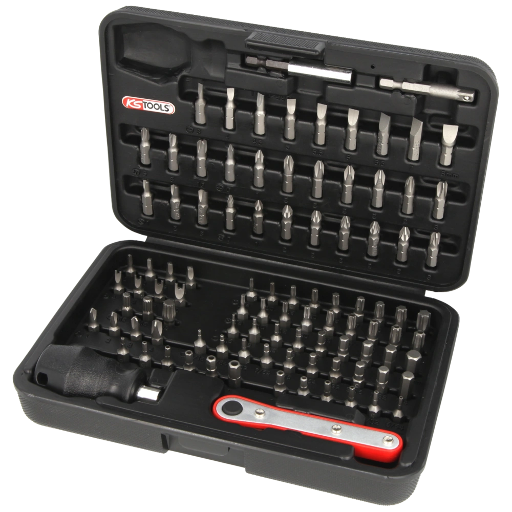 Die hochwertigen Bits im stabilen Kunststoffkoffer sind aus Chrom-Vanadium-Stahl S2 gefertigt. Der Satz ist ideal geeignet für Verschraubungen in Handwerk und Industrie. Die ordentliche Anordnung der...