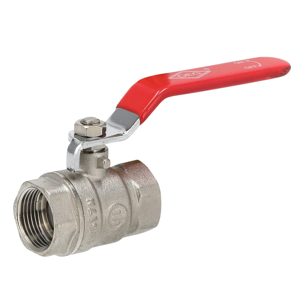 Kugelhahn für Wasserversorgungs-, Heizungs- und Klimaanlagen und Installation in Ölleitungen. Der Hebelgriff besteht aus Stahl mit einem Kunststoffüberzug.