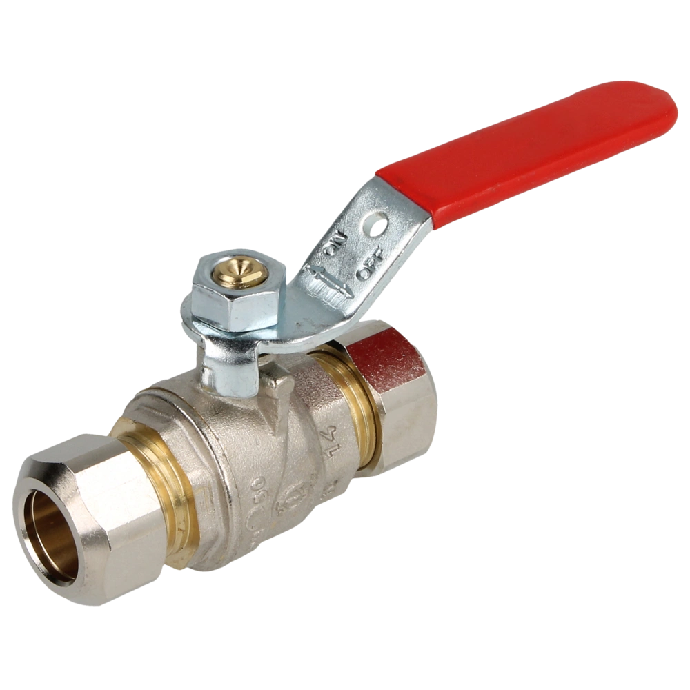 Der Kugelhahn ist geeignet für Wasserversorgungs-, Heizungs-, Klima- und Druckluftanlagen. Er hat eine beidseitige Klemmringverschraubung. Der rote Hebelgriff besteht aus lackiertem Stahl und der Körper aus Messing nach CW617N.