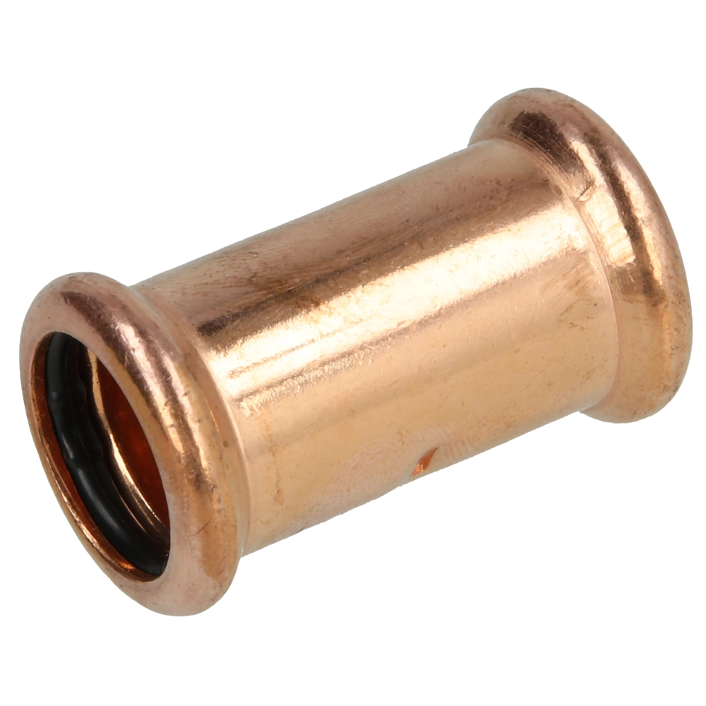 Pressfitting aus Kupfer mit Kontur M zur Verbindung von Rohren in Sanitär-, Heizungs- und Kühlsystemen.