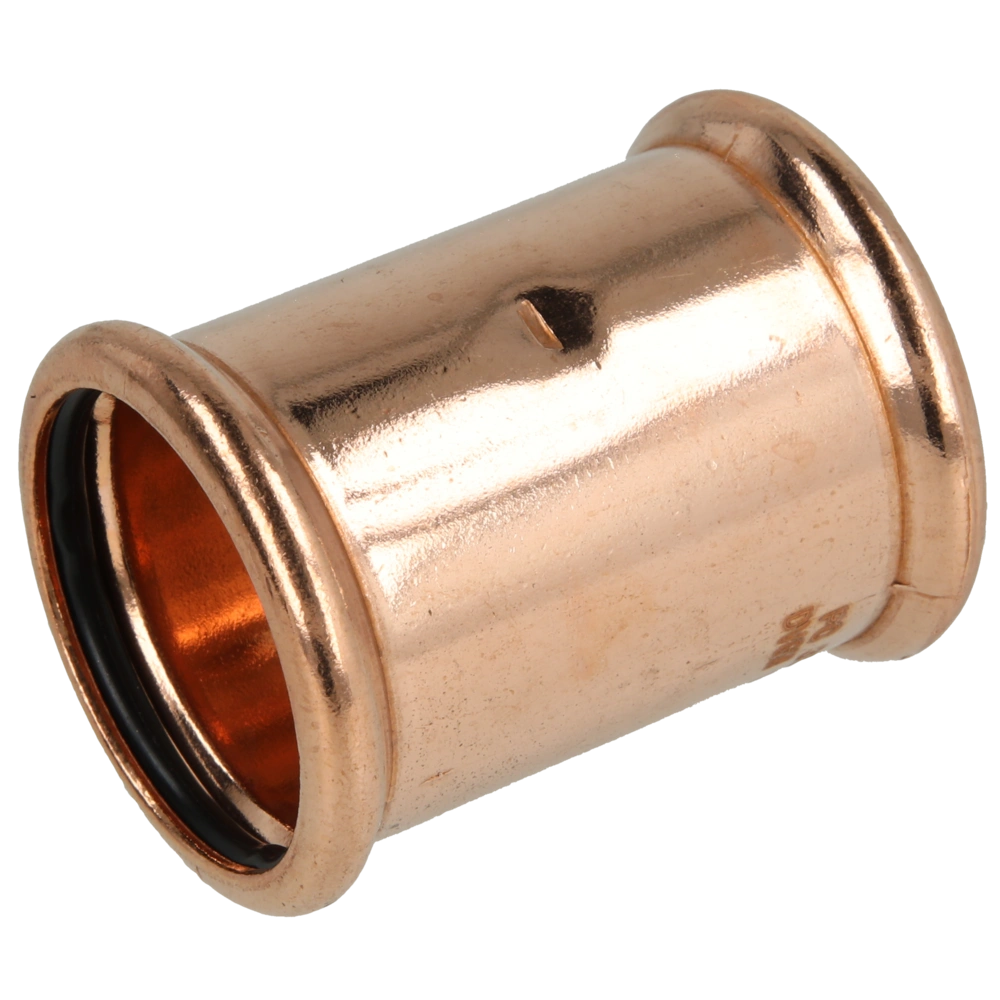 Pressfitting aus Kupfer mit Kontur M zur Verbindung von Rohren in Sanitär-, Heizungs- und Kühlsystemen.