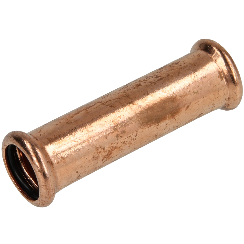 Pressfitting aus Kupfer mit Kontur M zur Verbindung von Rohren in Sanitär-, Heizungs- und Kühlsystemen.