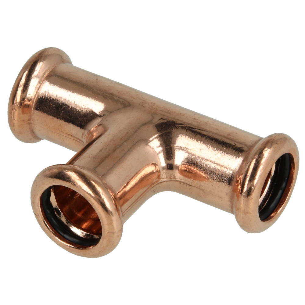 Pressfitting aus Kupfer mit Kontur M zur Verbindung von Rohren in Sanitär-, Heizungs- und Kühlsystemen.