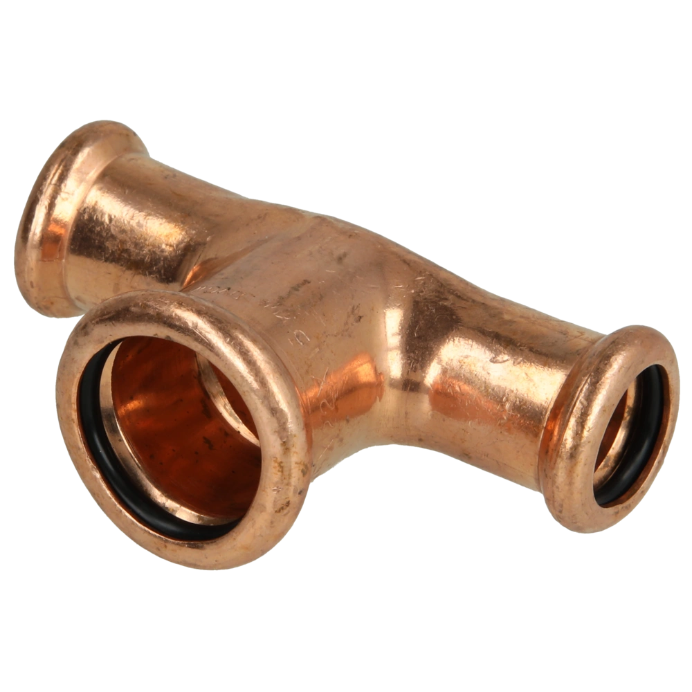 Pressfitting aus Kupfer mit Kontur M zur Verbindung von Rohren in Sanitär-, Heizungs- und Kühlsystemen.