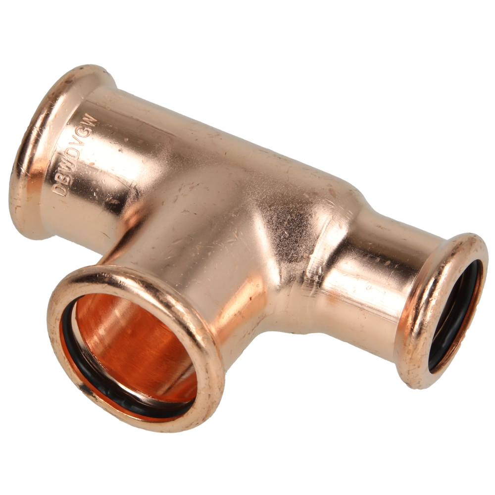 Pressfitting aus Kupfer mit Kontur M zur Verbindung von Rohren in Sanitär-, Heizungs- und Kühlsystemen.