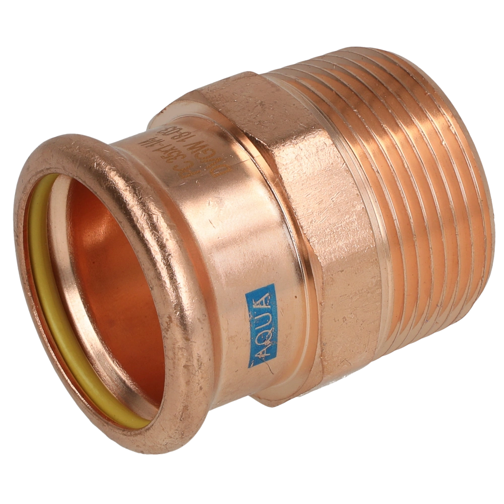 Pressfitting aus Kupfer mit Kontur M zur Verbindung von Rohren in Sanitär-, Heizungs- und Kühlsystemen.