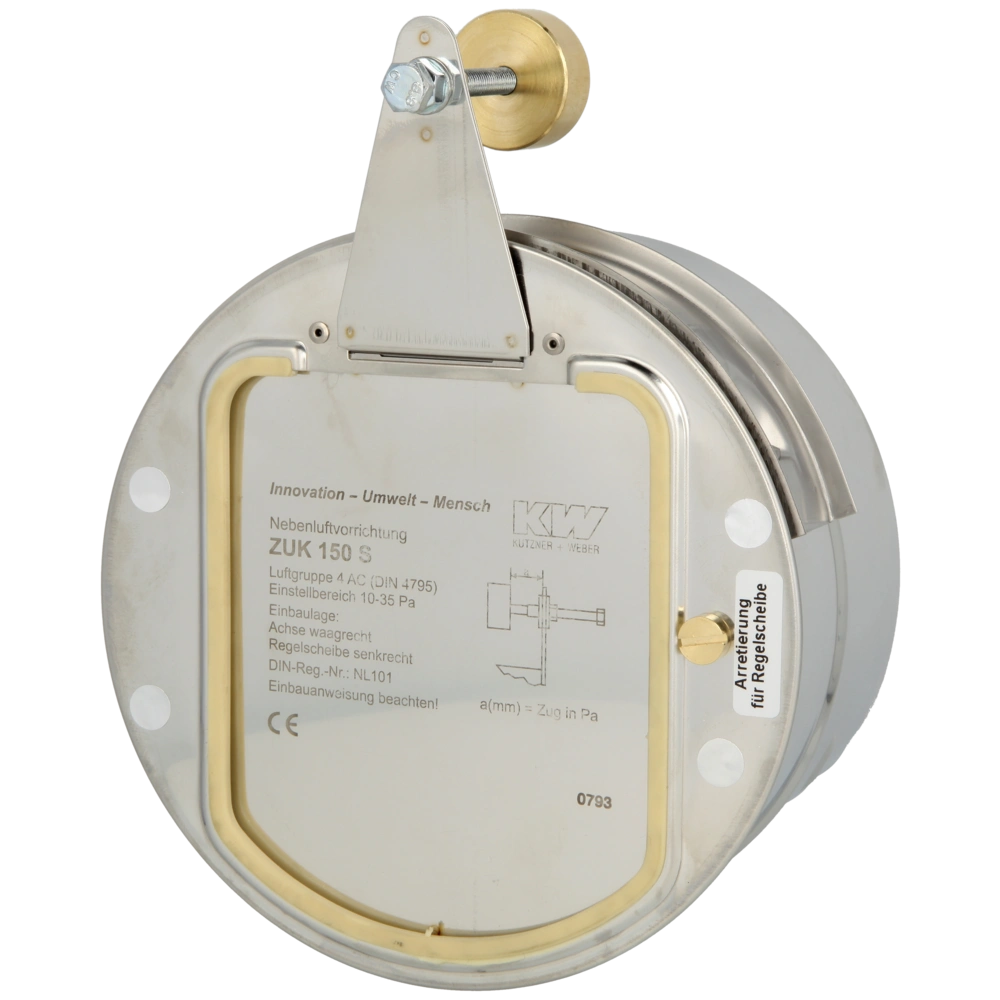 Präzisions-Zugbegrenzer aus Edelstahl mit sehr hoher Regelgenauigkeit des Unterdrucks in Schornsteinen. Mit einer nachrüstbaren Motorsteuerung kann die Klappe auch als kombinierte Nebenluftvorrichtung eingesetzt werden. Der Zugbegrenzer besitzt außenliegende, selbstreinigende Lager, eine Arretierungsmöglichkeit in der Geschlossenstellung und einen Anschlagsdämpfer für zuverlässiges und geräuscharmes Arbeiten. Für einen besonders leisen Betrieb wird die Regelscheibe zusätzlich durch eine EPDM-Dichtung gedämpft.
