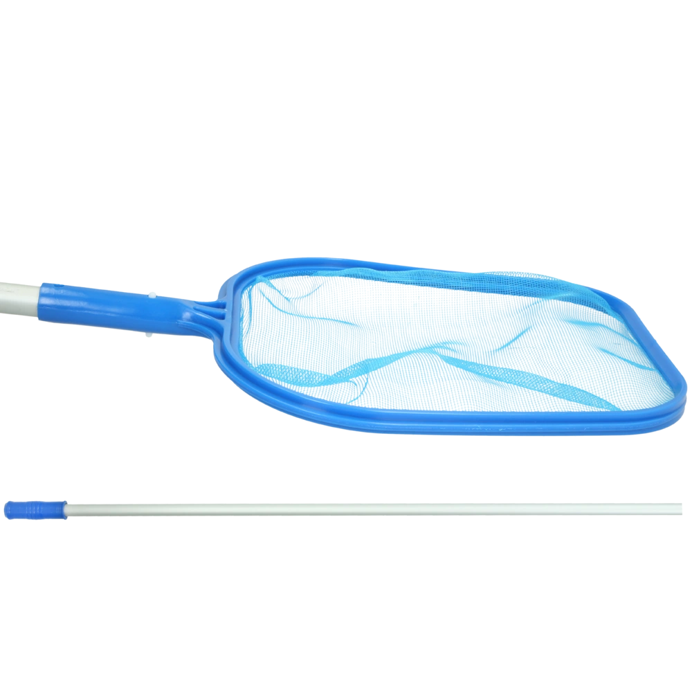 Laubkescher mit Alu-Stange zur Entfernung von Laub und anderen Verschmutzungen in Pools und Teichen. Das in mehreren Lagen gewebte, robuste Netz ist am Rahmen maschinengenäht und dadurch sehr strapazierfähig.