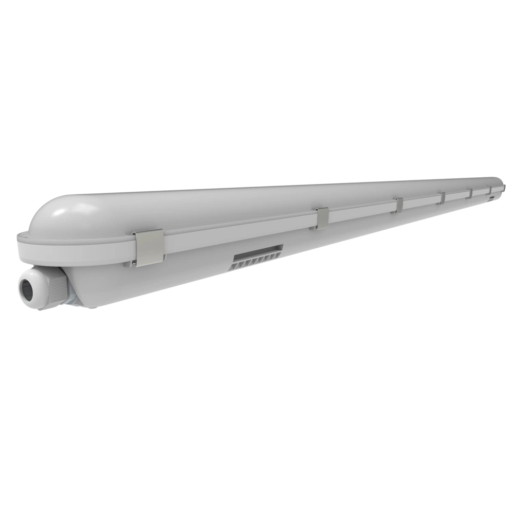 Staub- und strahlwassergeschützte Feuchtraumleuchte zur hellen und flackerfreien Ausleuchtung von Arbeitsplätzen, Garagen und Lagerhallen. Das Philips Xitanium Netzteil sorgt für eine