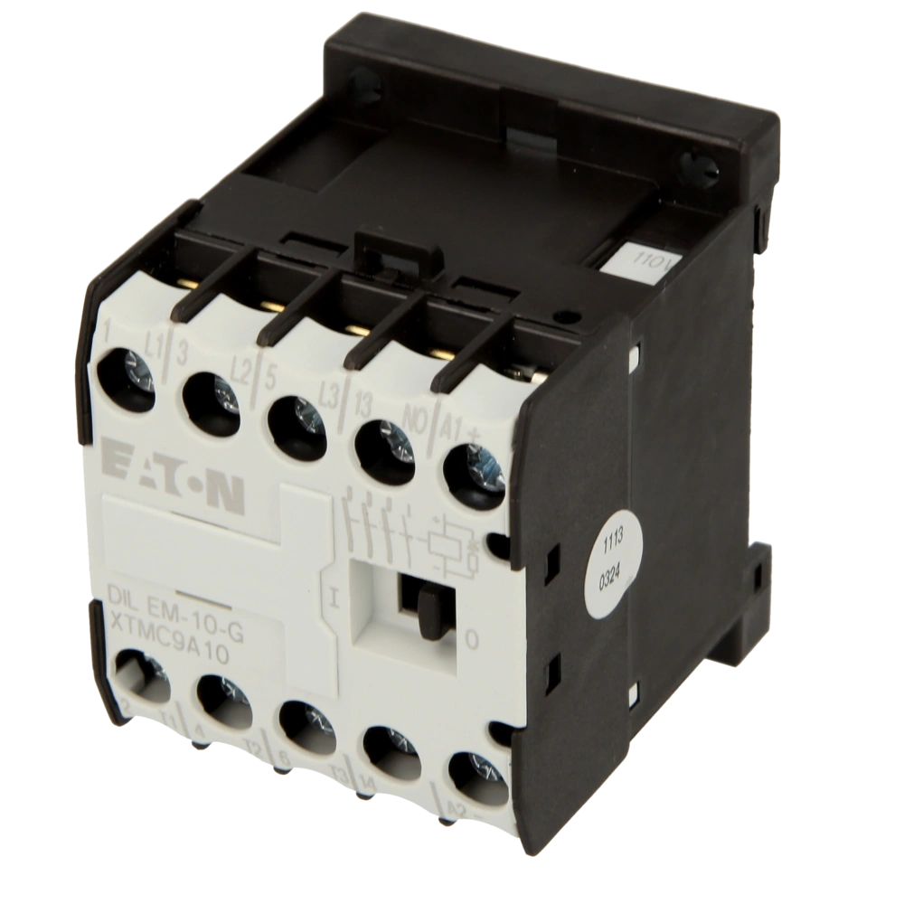 3-poliges Kleinschütz mit einem Schließer und Schraubklemmenanschluss zum Schalten von Motoren und ohmschen Lasten.