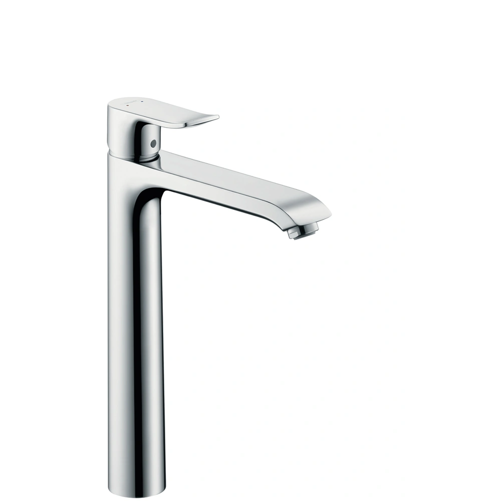Einhand-Waschtischarmatur mit Keramikmischsystem und einstellbarer Temperaturbegrenzung. Flexible Noppen aus Silikon erleichtern das Entfernen von Kalk am Mundstück.